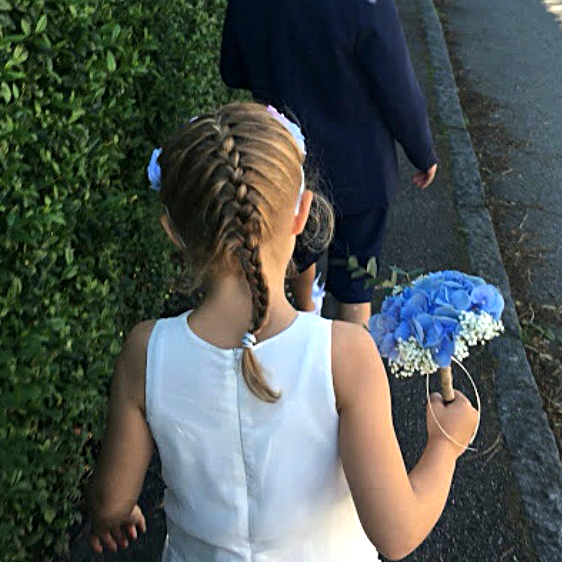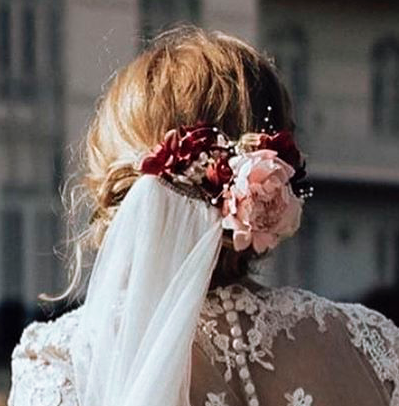 Brudebukettens farver og blomster danner stilen for den øvrige blomsterpynt, som blomsterne til håret, knaphulsblomsterne, brudepigebuketterne, bilpynten, kirkepyntning og pyntningen af bordene.