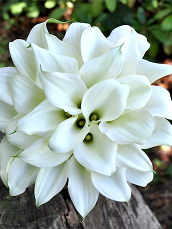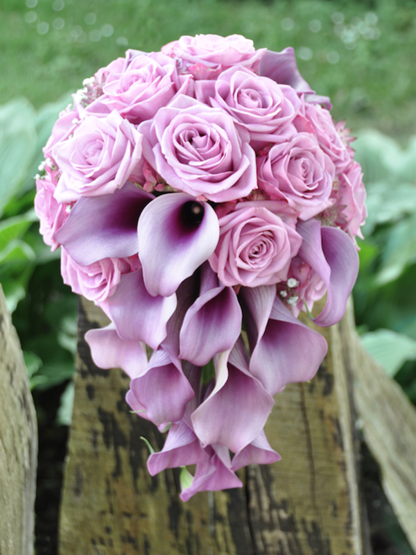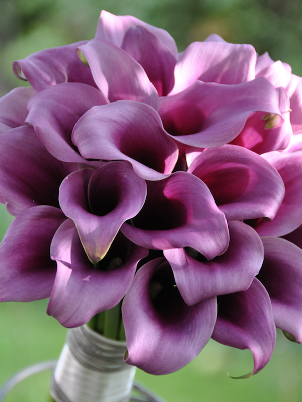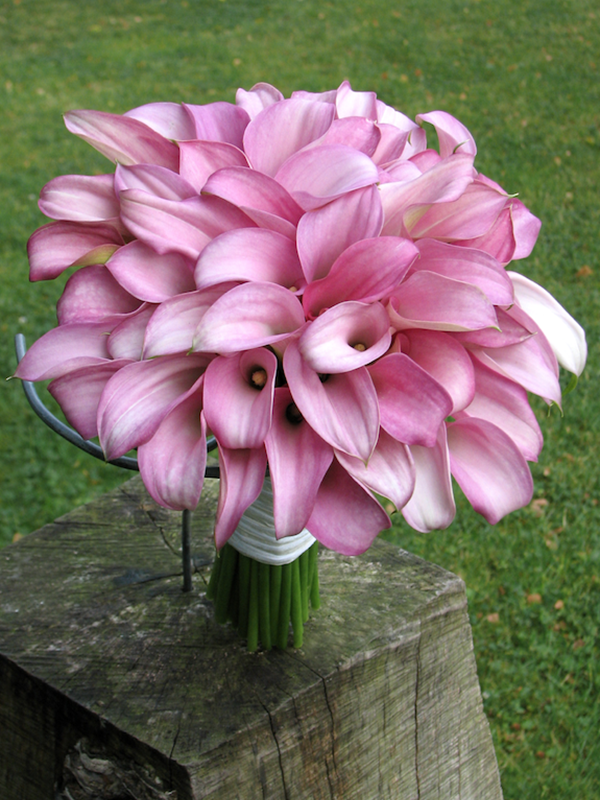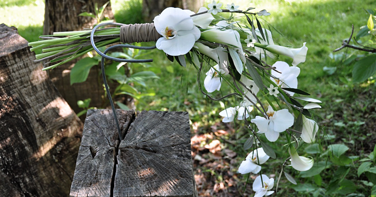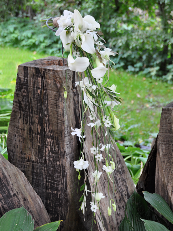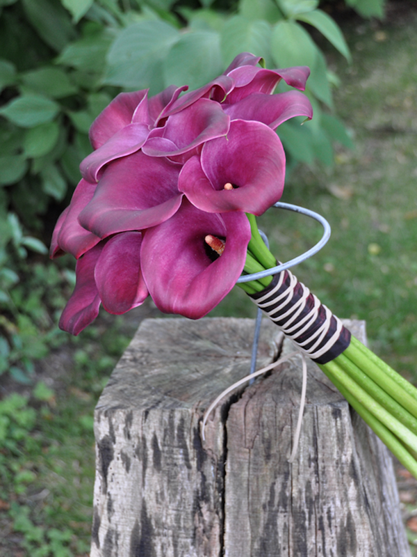 Skal brudebuketten være anderledes, er en armbuket af Calla meget elegant og enkel. Armbuketten bæres, så den ligger i armen. Den enkle brudebuket egner sig både til enkle brudekjoler med rene linjer og til brudekjoler med mange detaljer. Calla og orkideer er to blomster som ikke safter, det vil sige at de ikke laver pletter på brudekjolen. Derfor kan de med sindsro bindes med stilkene ude.